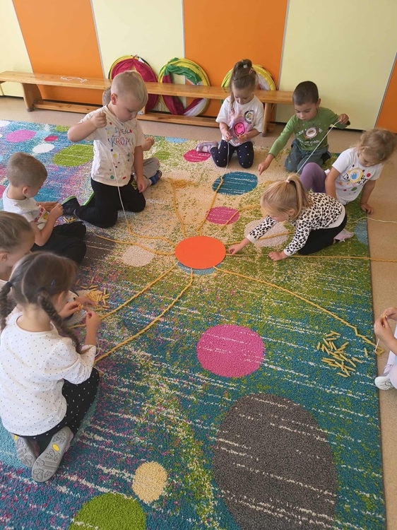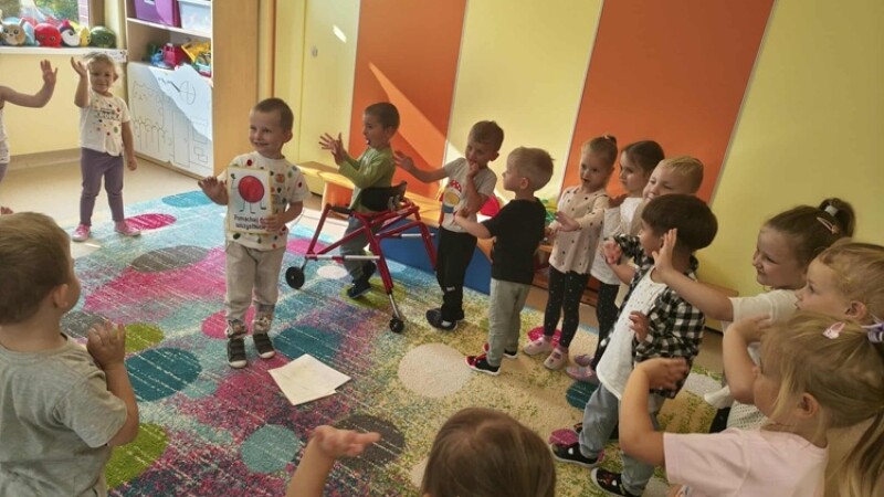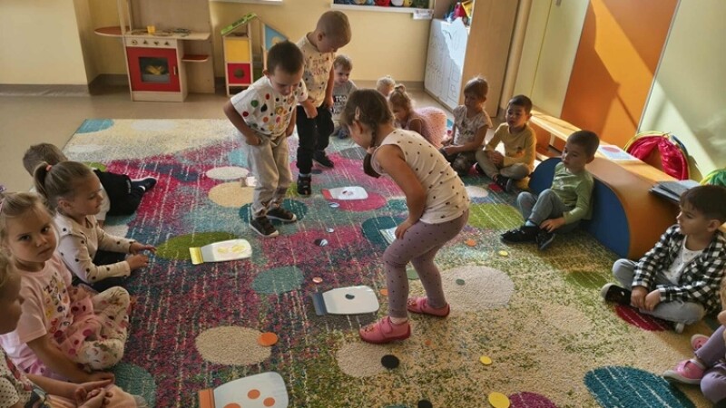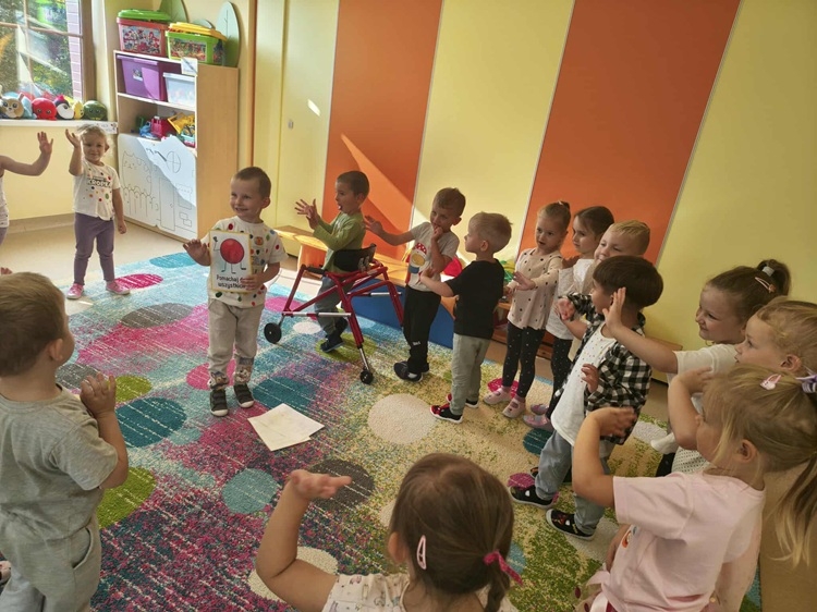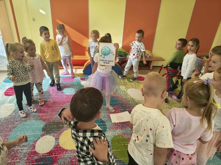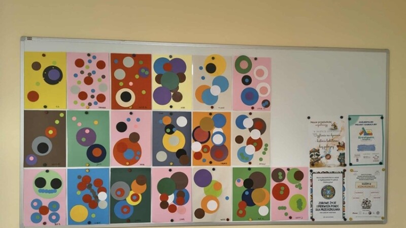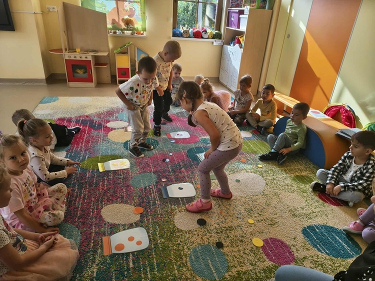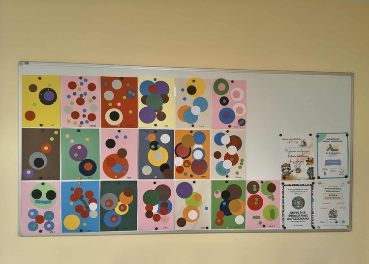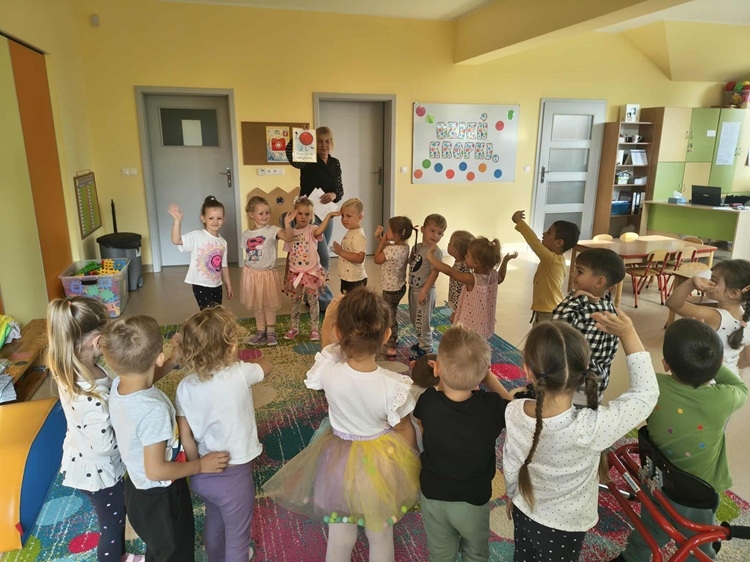 Już od rana w sali zrobiło się kolorowo, ponieważ dzieci przyszły ubrane w stroje ozdobione kropkami. Był to dzień pełen radości, śmiechu i wspólnego tworzenia. Zabawy i zadania wypełnione były różnymi kropkami. Dzięki takim inicjatywom dzieci uczą się wiary w siebie, odkrywają swoje zdolności i przekonują się, że każdy może pokonać trudności - tak jak w opowiadaniu o odważnej kropce!