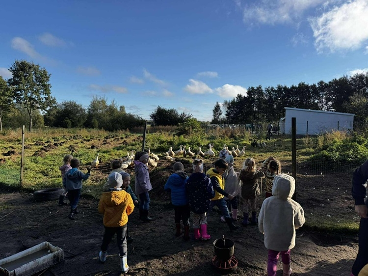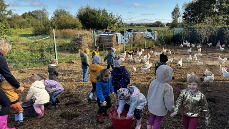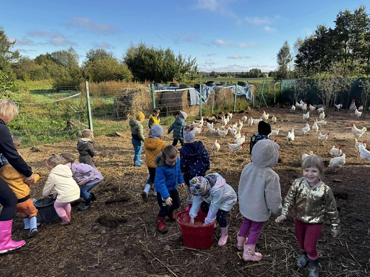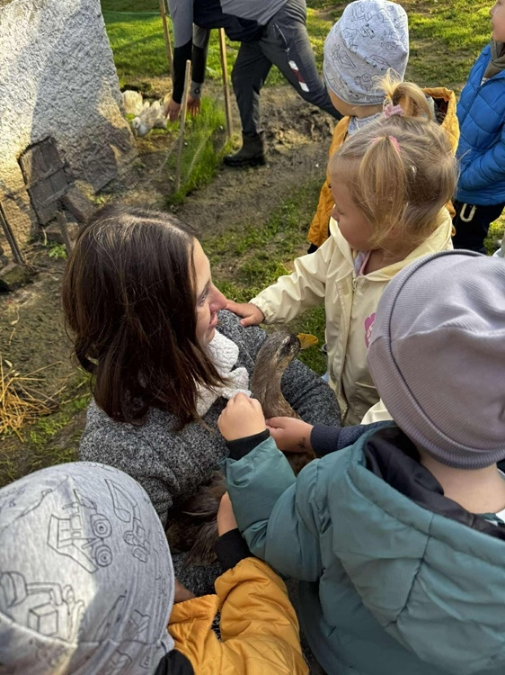 Przedszkolaki miały okazję obejrzeć jak wygląda hodowla kur i kaczek - poznać różne odmiany występujące w tej hodowli oraz sposób ich karmienia. "Kotki" były zaskoczone ilością oglądanego drobiu - było tam 600 sztuk domowego ptactwa! Każde dziecko mogło samodzielnie pokarmić kurki oraz kaczki, zobaczyć gdzie mieszkają oraz gdzie wysiadują jajka. Pani Ania pokazała nam również, gdzie magazynuje zebrane jaja. Poznaliśmy również przepięknego, bardzo dużego rudego królika. Na koniec każde dziecko mogło pokolorować kolorowankę z kurką lub kaczuszką oraz skosztować przygotowanego przez Państwa Jasnos poczęstunku.