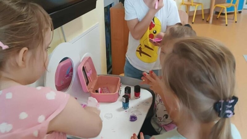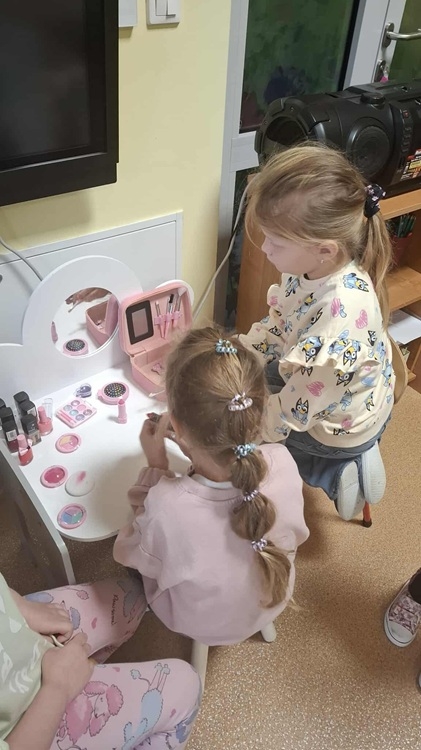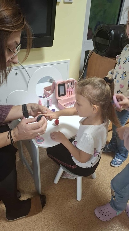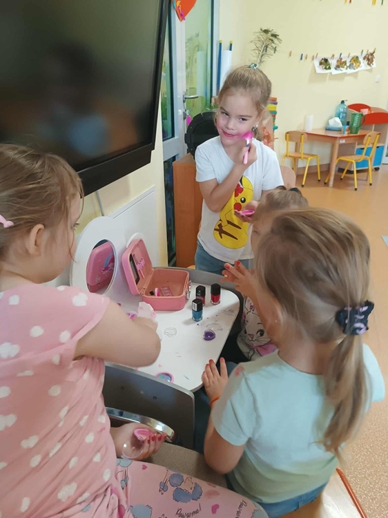 Grupa "Jeżyki" obchodziła to święto na wesoło. Koledzy wręczyli naszym małym damom upominki, złożyli życzenia i wykonali piękne laurki. Wiele radości sprawił dziewczynkom kącik piękności, w którym poczuły się jak w salonie piękności. Mogły pomalować sobie paznokcie i wykonać cały makijaż.